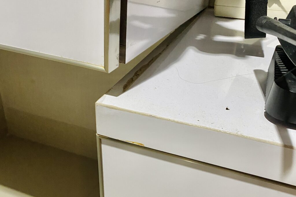上部の棚も扉が斜めってる